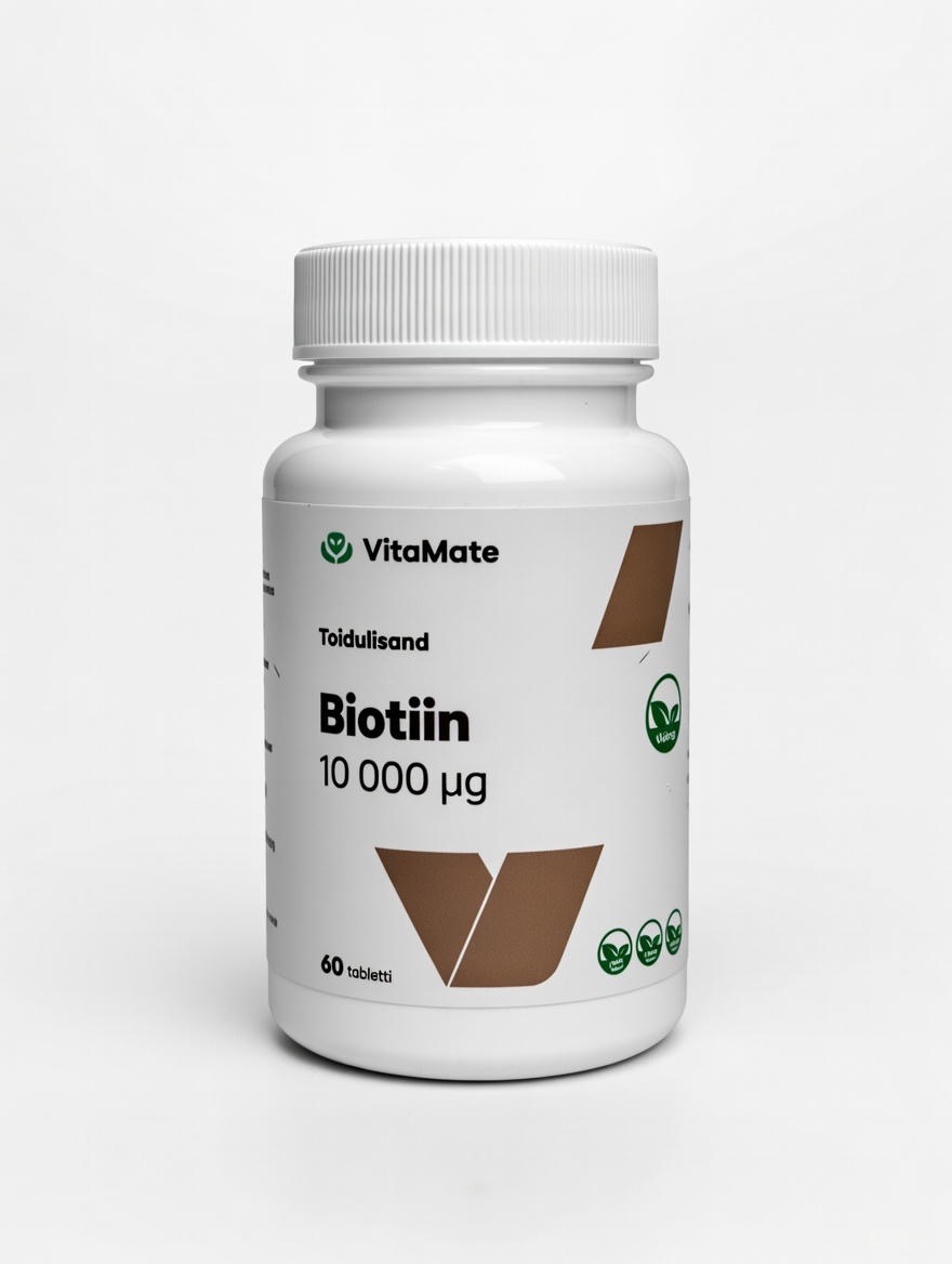 VitaMate Biotiin 10 000 μg sisaldab kõrge kontsentratsiooniga biotiini (B7-vitamiini), mis aitab säilitada naha, juuste ja limaskestade talitlust. Biotiin aitab kaasa normaalsele energia- ja makrotoitainete ainevahetusele ning toetab närvisüsteemi normaalset talitlust.